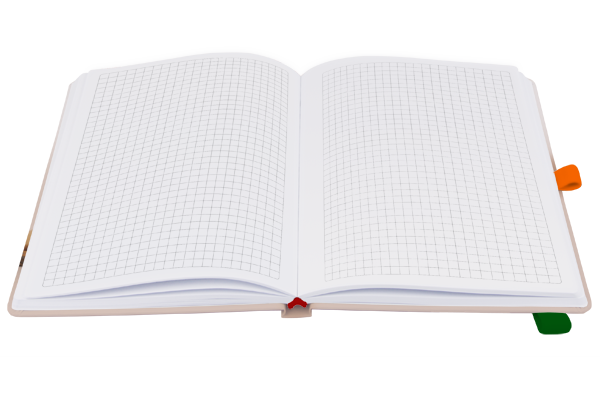 Druckdatenblatt für Notizbuch mit individuellen Inhaltsseiten und Gummiband
