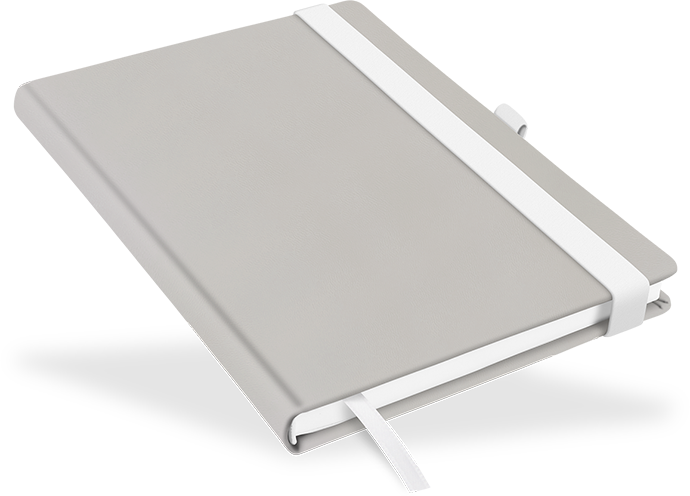- Lesezeichenband, Stiftschlaufe und Gummiband in weiß