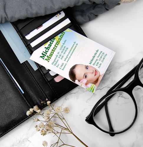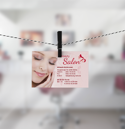 Häufig empfinden Unternehmen die Visitenkarte im Zeitalter der Digitalisierung für nicht relevant. Jedoch tragen Visitenkarten Kosmetik einen großen Teil zum professionellen Image eines Salons bei! Die handliche Form der Visitenkarte wird z.B. in Geldbörsen, sowie an der Pinnwand oder auf dem Schreibtisch aufbewahrt.