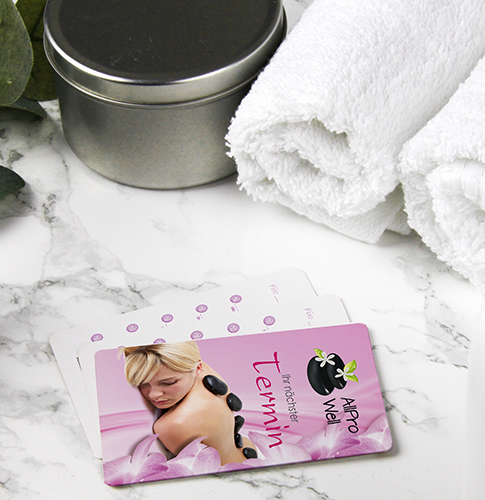 Gestalten Sie Ihre eigene Terminkarte ansprechend mit passendem Motiv und Ihrem Praxislogo und machen auf Ihre Massagepraxis aufmerksam! Erinnern Sie Ihre Patienten und Kunden zugleich an bevorstehende Termine und Ihr Unternehmen!