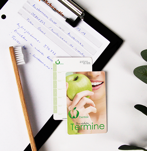 Der Zahnarzt Termin wurde schon wieder vergessen? Zwischen den zahlreichen Terminen für die Kinder und den Meetings oder Deadlines auf der Arbeit ist es häufig schwer, alle Termine im Kopf zu behalten. Für Ihre Patienten bedeutet das vielleicht Frustration, aber für Ihre Praxis eine erschwerte Terminplanung. Vereinfachen Sie Ihre Praxisorganisation und geben Sie Ihren Kunden eine praktische Erinnerungshilfe mit an die Hand, welche gelichzeitig auf die wichtigsten Daten bezüglich Ihrer Praxis verweisen - so werden Ihre Individuelle Terminkarten Ihrer Praxis zu unentbehrlichen Helfern.
