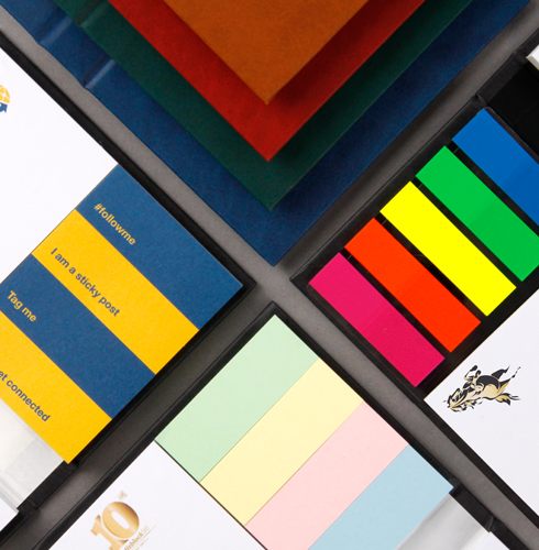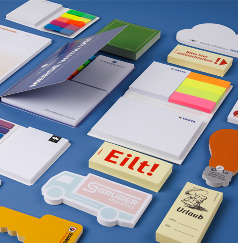 Veredeln Sie Ihr Haftnotiz-Giveaway neben dem standardmäßigen Haftnotizblock-Druck mit weiteren Assets wie Folienprägung, Namensprägung oder verschiedene Lederlook-