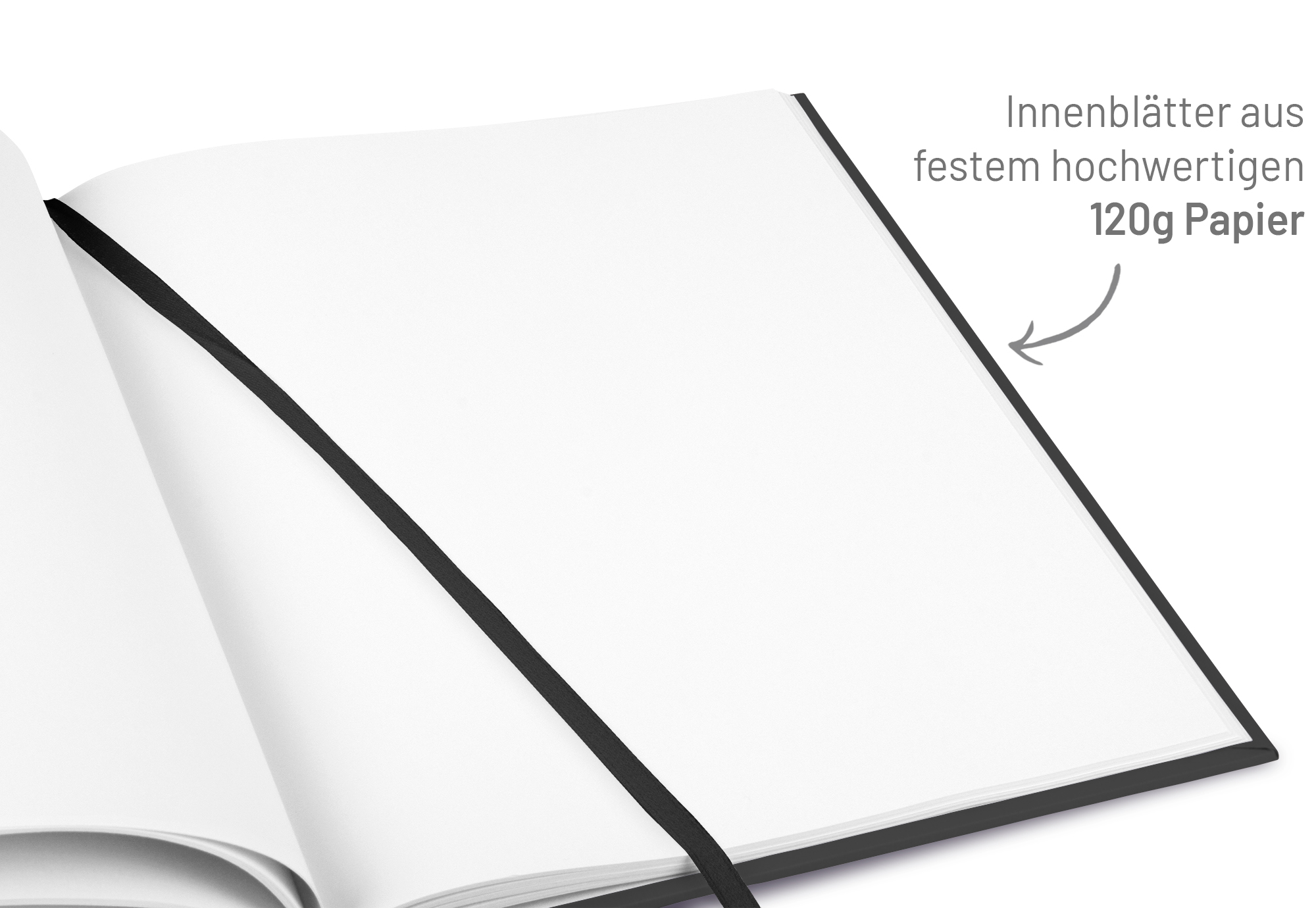 Wahlweise mit oder ohne Prägung auf dem Umschlag Folienprägung in Silber oder Weiss Kapital- und Leseband in Schwarz Material Umschlag: Stabiles Hardcover im edlen Anthrazit-Farbton Inhalt: 50 Blatt 120 g/m² Premium PrePrint weiß