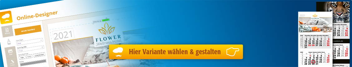 Sie können zwischen einer 4- oder 7-sprachigen Variante wählen und entscheiden, ob Sie die gesamte Rückwand oder nur die Kopflasche des Werbekalenders individuell bedrucken lassen. Es steht Ihnen viel Platz zur Verfügung, um Ihre Werbebotschaft eindrucksvoll in Szene zu setzen und Ihr Unternehmen täglich in die Erinnerung Ihrer Kunden und Geschäftspartner zu rufen und potenzielle Neukunden auf Sie aufmerksam zu machen.