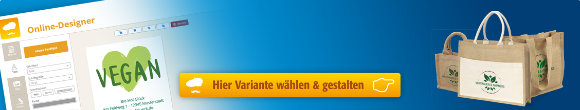 Jutebeutel sind für viele Menschen lieb gewonnene Begleiter, die sich leicht zusammenfalten und mitnehmen lassen. Sie sind robust sowie langlebig und können universell eingesetzt werden. Jutebeutel werden auch gerne als eine Art Handtasche genutzt. Sie bieten genügend Platz und sehen zudem gut aus. Bedrucken Sie Jutebeutel individuell mit Ihrer Werbebotschaft und sie trägt sich wie von selbst in die Welt.